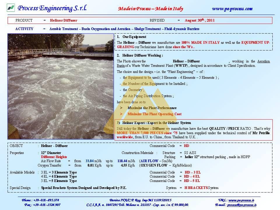 You will find the product data sheet for the Helixor coarse bubble diffusers we design, manufacture, and supply, along with their key technical properties.