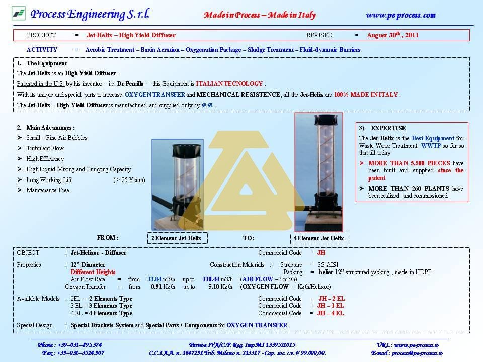 With a strong reputation in the field of wastewater treatment, Process Engineering (PE) offers reliable and innovative solutions like the Jet-Helix – High Yield that help facilities achieve their treatment goals efficiently and cost-effectively.