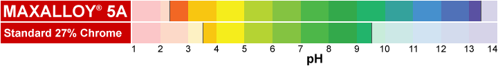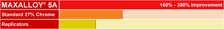 MAXALLOY® 5A hard iron is Wilfley’s proprietary version of standard 27% Chrome (ASTM A532 Class III, Type A) that has been specially processed to achieve a much higher hardness (740 HBN). The proprietary processing also increases the pH range, which gives MAXALLOY® 5A a much lower corrosion rate as compared to commonly available high chrome irons.